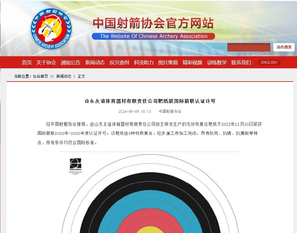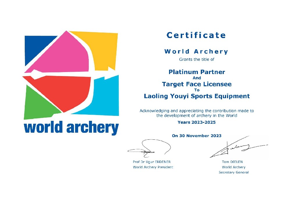 公司自主生產(chǎn)的器材先后成為2008年北京奧運(yùn)會(huì)、2010年廣州亞運(yùn)會(huì)、2011年深圳世界大學(xué)生運(yùn)動(dòng)會(huì)、2014年南京青奧會(huì)、2021年成都世界大學(xué)生運(yùn)動(dòng)會(huì)、2022年杭州亞運(yùn)會(huì)等世界知名賽事射箭器材供應(yīng)商。